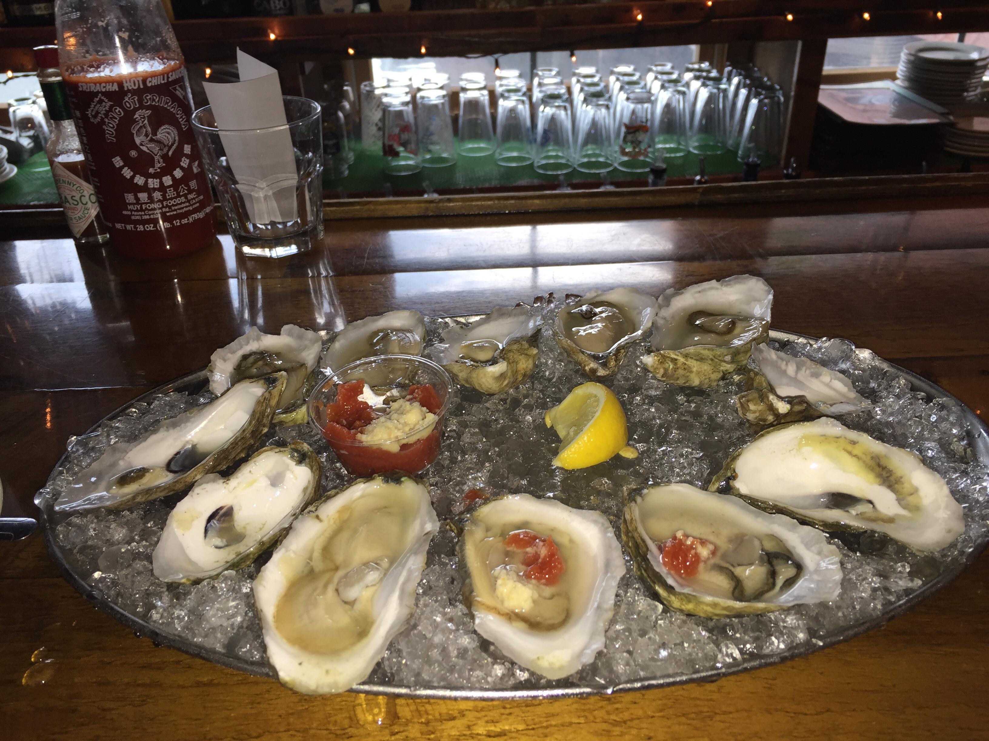 Oysters at The Rudder while the kids watch a movie at the yacht club…. And then a hot dog at Top Dog followed by ice cream on the neck.