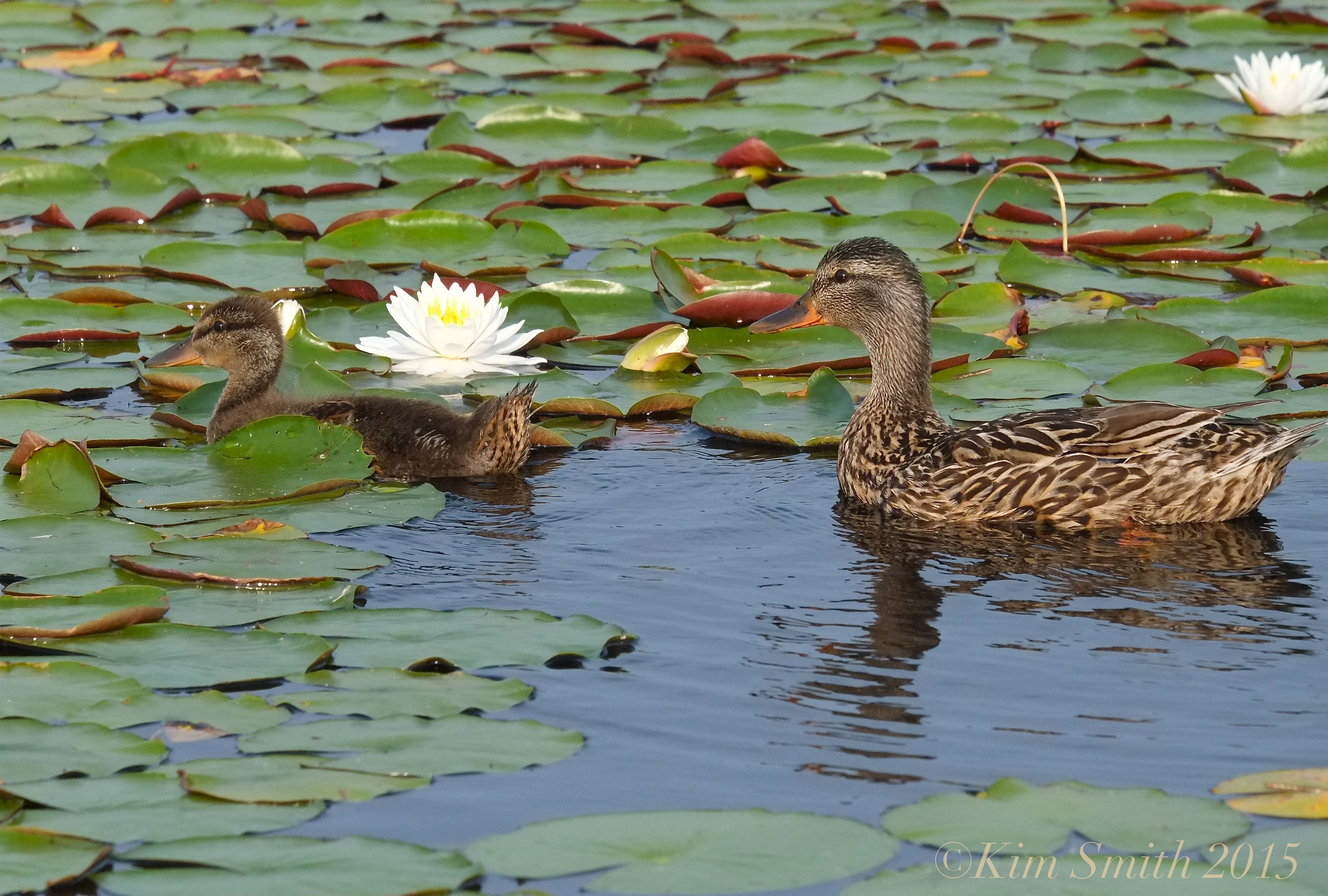 Last week, Mom Mallard had to cut a path through the lily pads.