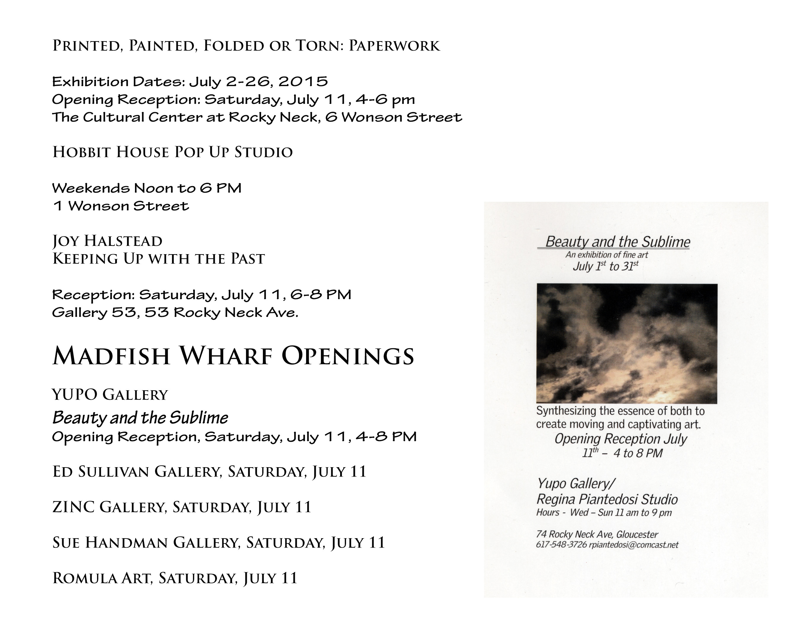 More information on all North Shore Arts Association events is available by visiting their website at www.nsarts.org, and by email at arts@nsarts.org, or by telephone 978 283-1857.