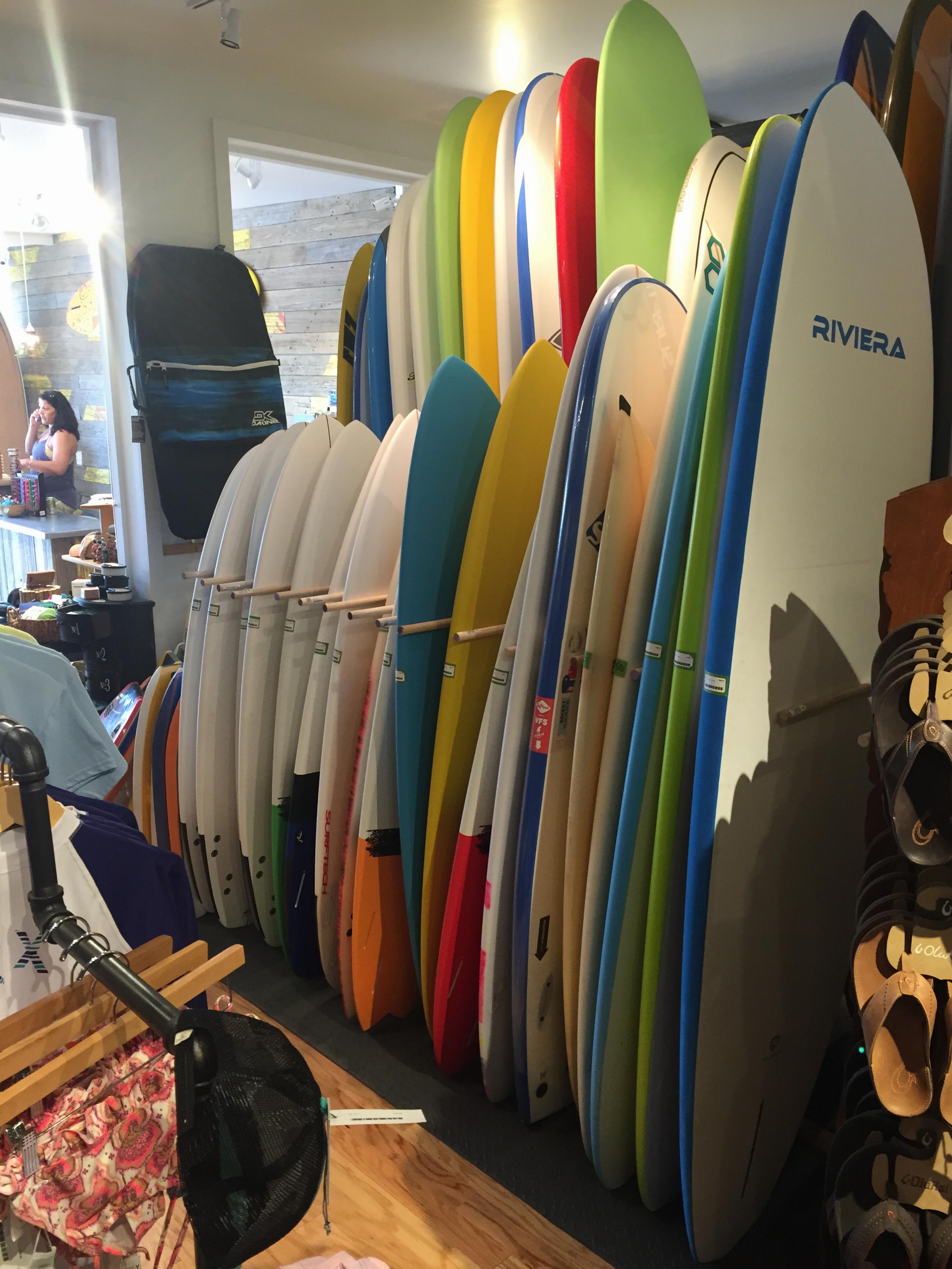 Long boards, short boards, boogie boards, stand ups, and skim boards!