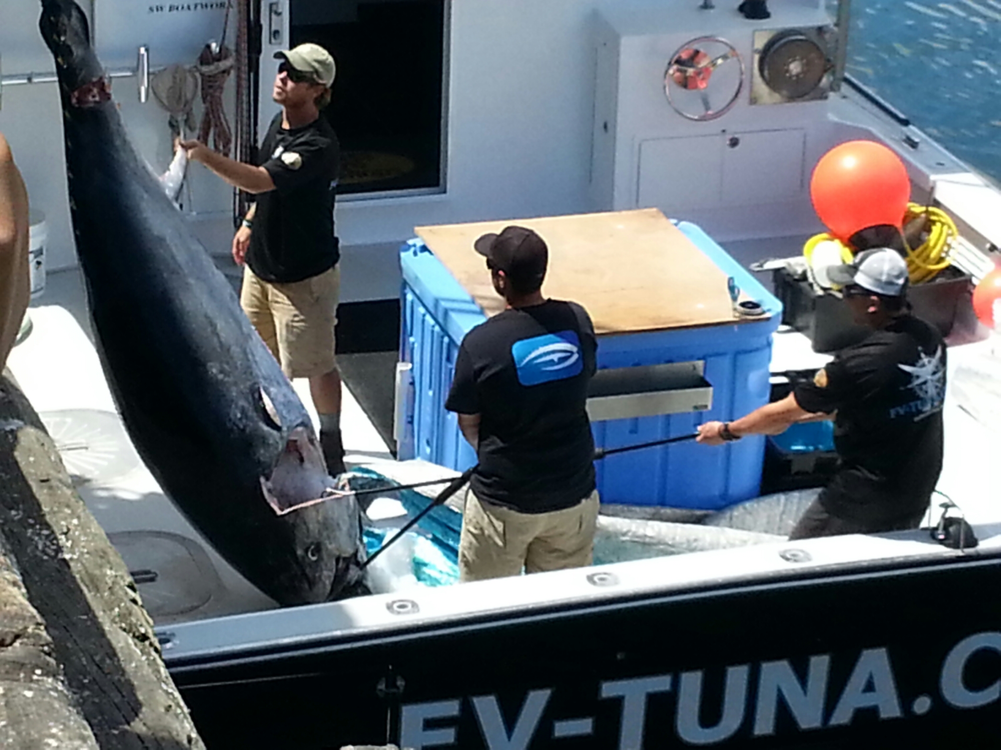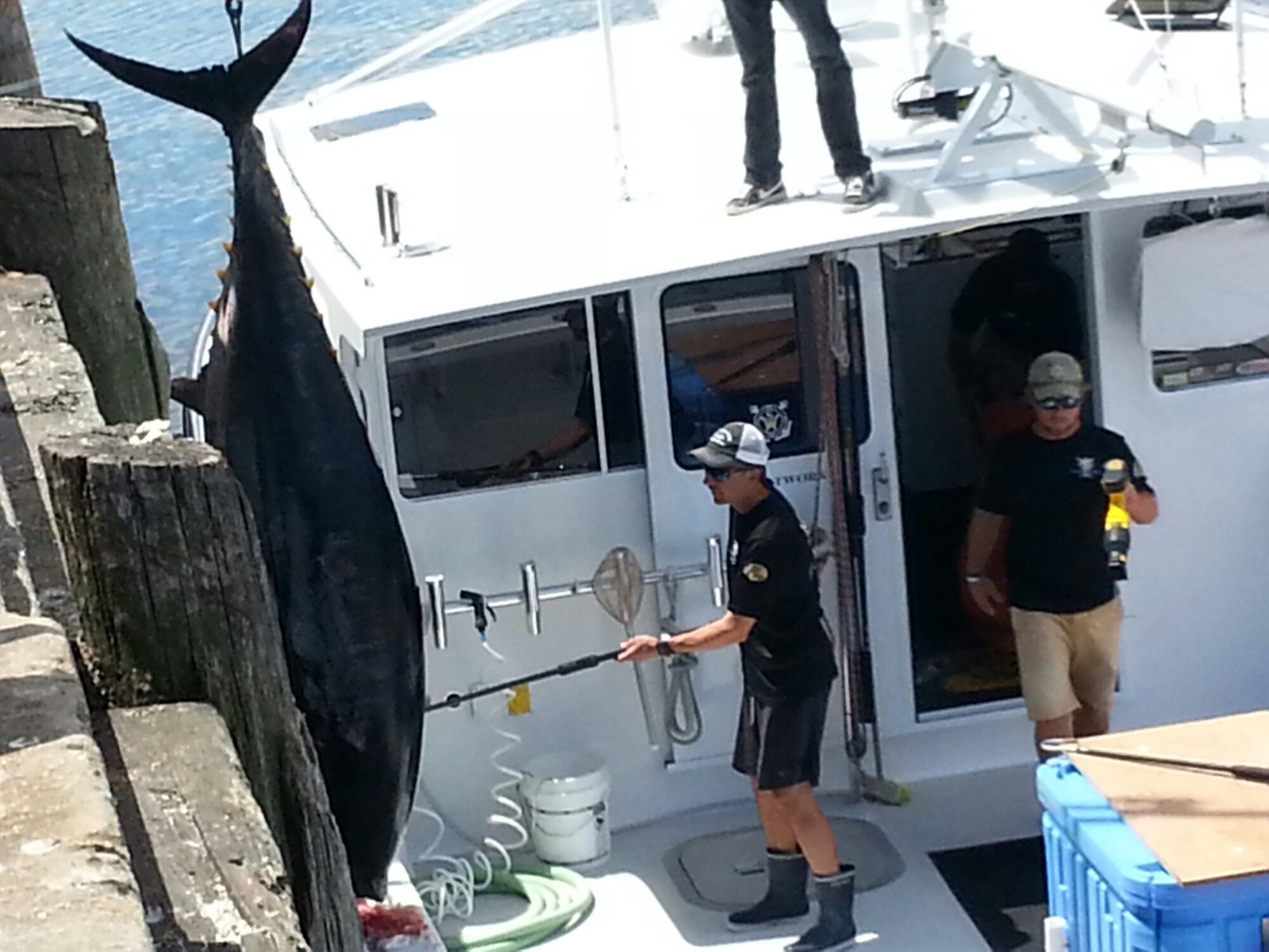 Let’s hope they get it on the boat and then stay tuned for the ETA at Cape Ann’s Marina Resort for weigh in. Good luck, Bulldog!!