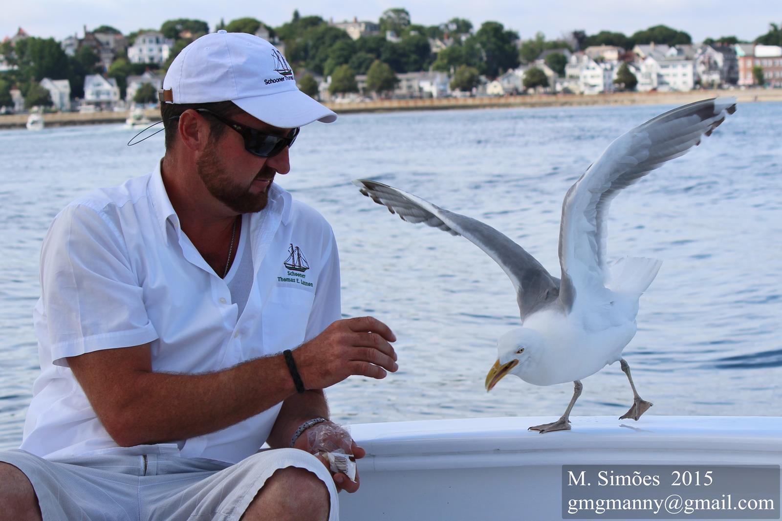 “Polly-Five-Toe the Gull” started visiting the Thomas E. Lannon in 2014, it returned again this year. Capt. Heath has become friends with “Polly-5-Toe” as you can see in the slide show below. Polly-5-Toe loves oyster crackers and sits on the back of the Lannon, or on Capt. Heath’s hand to enjoy her crackers.