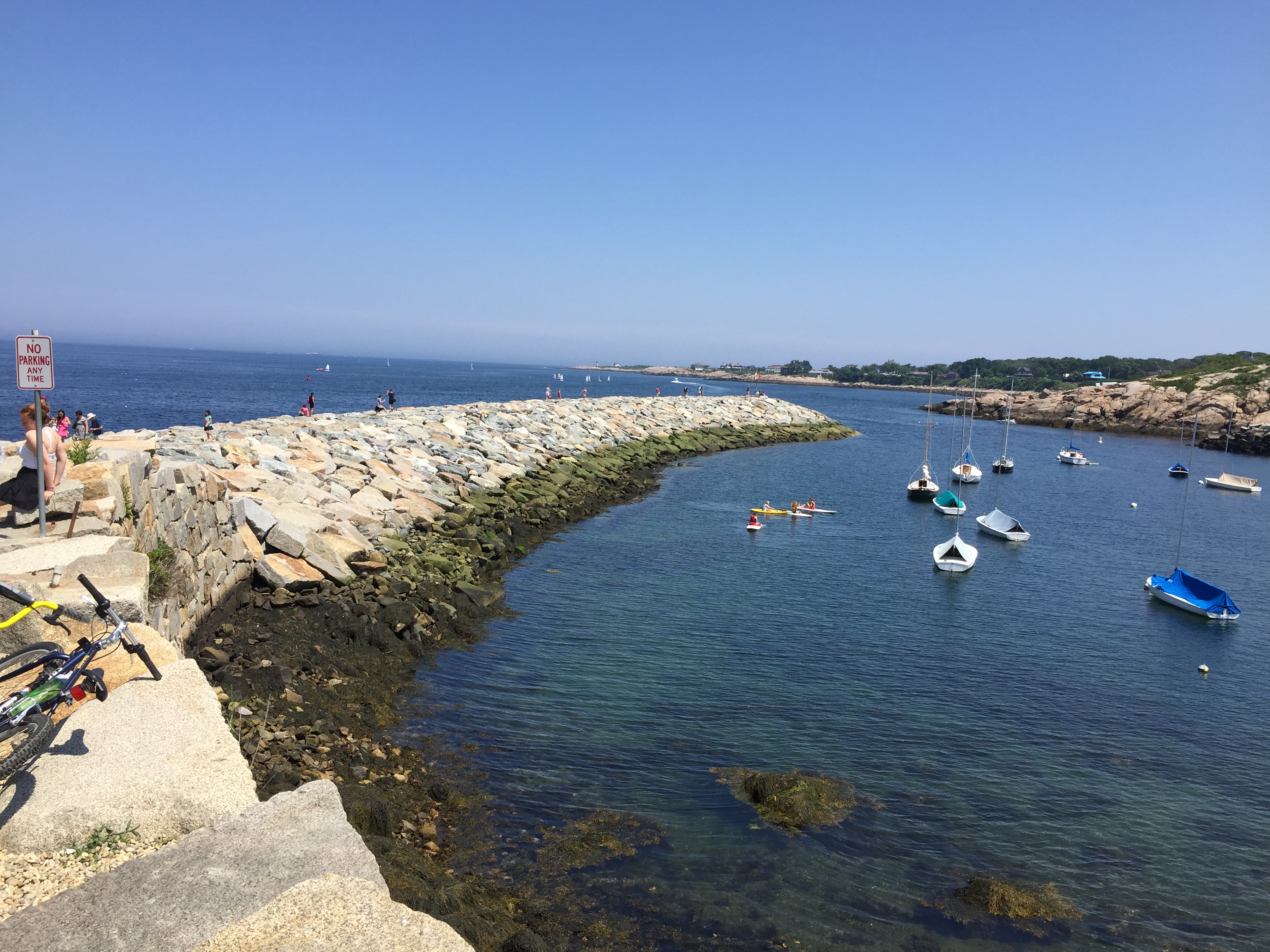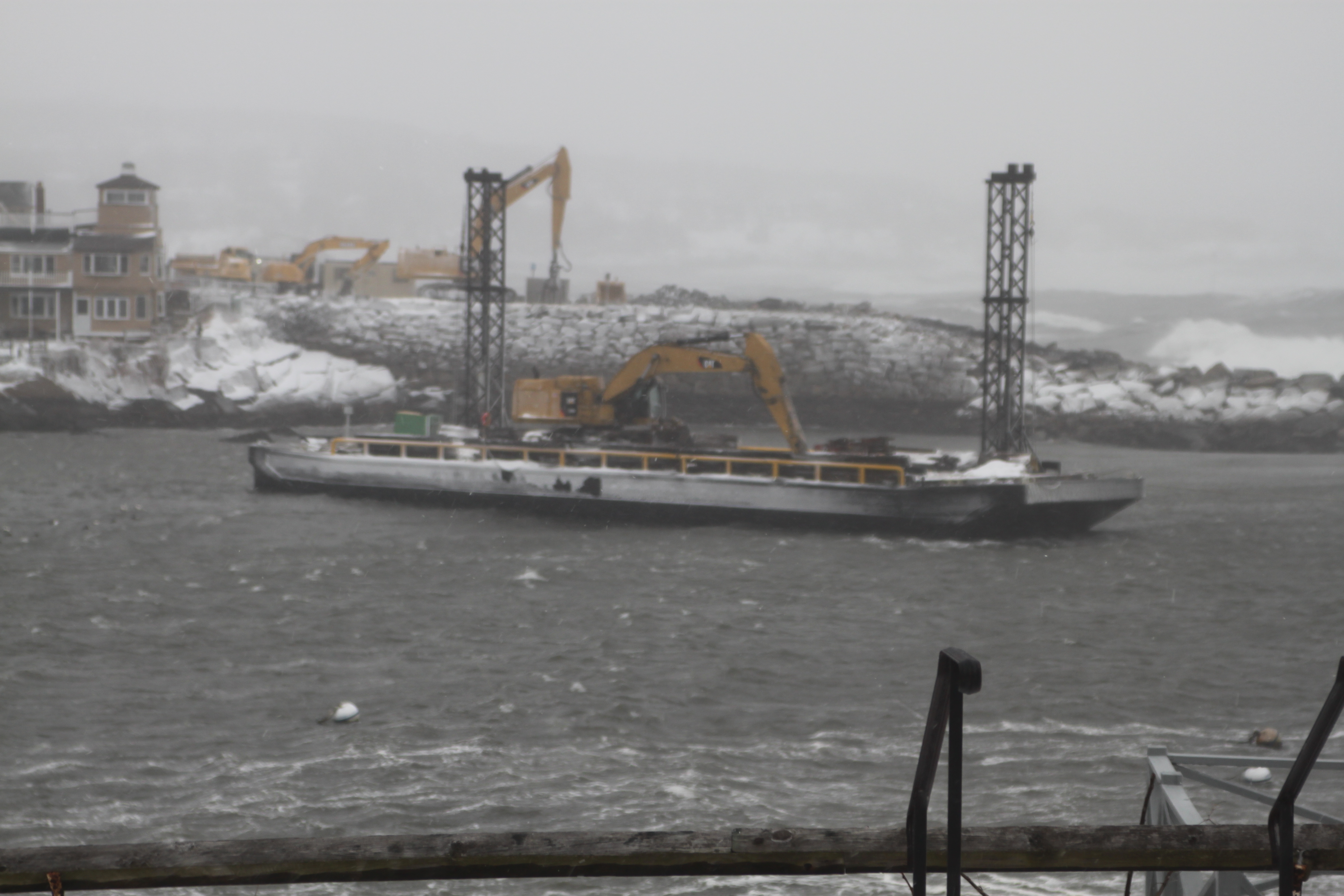 We are absolutely loving the new breakwater in Rockport! A part of my affection probably stems from having watched it being constructed slowly, day by day and massive stone by massive stone, all winter long. Maybe even more so because of the fact that it was one of the worst winters in our history.