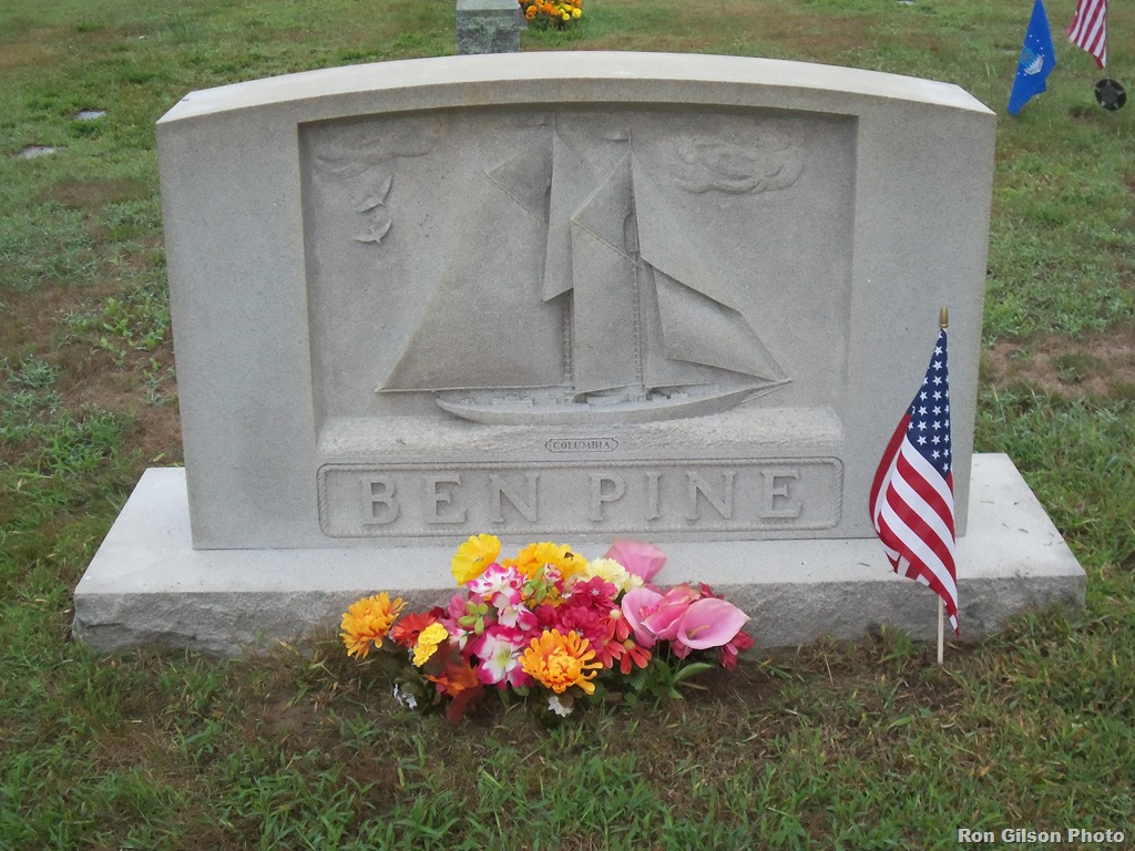 You can see from the photo Ron took this morning that on the tombstone of Ben Pine it depicts the beautiful Schooner Columbia.