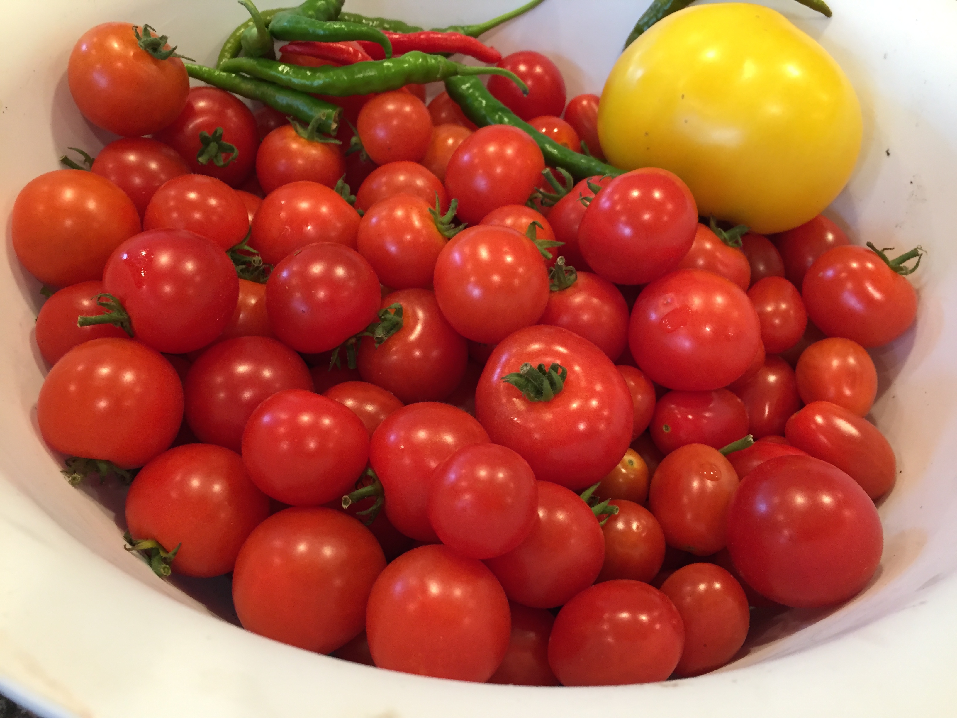 Last night I whipped up a delicious “Roasted Heirloom Tomato Soup” and batch of “Oven-Dried Tomatoes”, (recipe highlighted on page 62 in my cookbook “Gifts Of Gold In A Sicilian Kitchen With Sista Felicia; Harvest”) using freshly picked tomatoes, from gardens in the backyard garden that neighbor Deanna and I share!