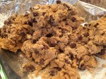 11  using overlapping foil, carefully transfer cookie bar to cutting board; shimmy foil out from bottom and discard; cut into squares; serve