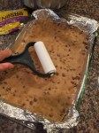 9  transfer batter to prepared pan, using clean hands or small pampered chef rolling pin press into even thickness with smooth flattened top