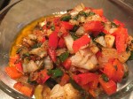 2 add one tablespoon olive oil and diced red pepper; saute one minute remove from heat; transfer 4 tablespoons salsa butter vegetable mixture to small bowl; reserve