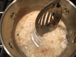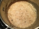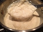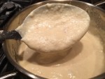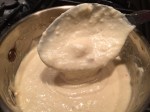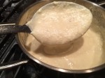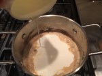 6 in medium saucepan melt 2 tablespoons salted butter; add 2 tablespoons flour; stir vigorously 45 seconds; add heavy cream; mix well
