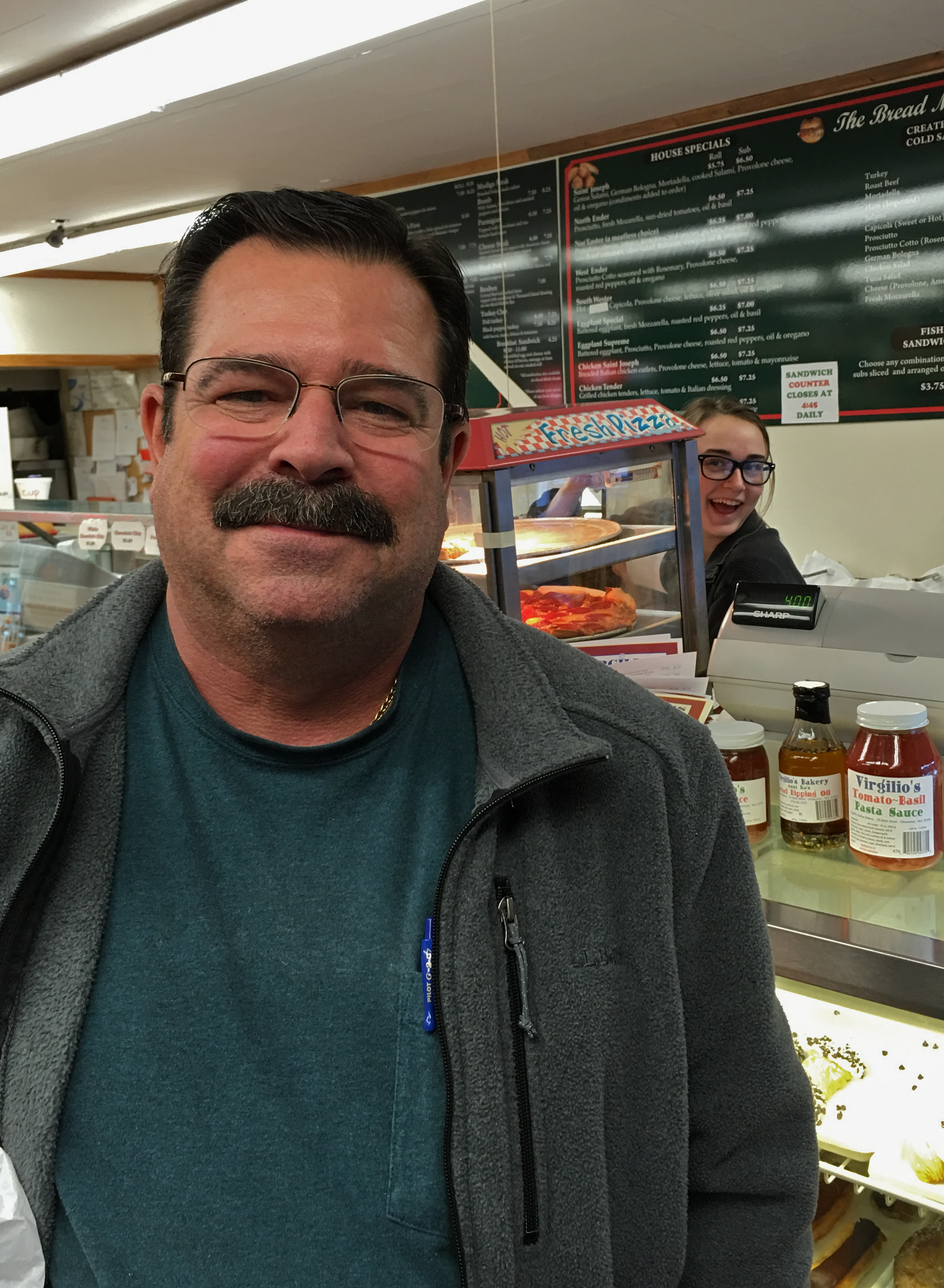 Mayor Sefatia stops in for a quick cup of Caffe Sicilia fabulous vegigie soup during her super busy day and shares a bite with Wicked Tuna Captain Hollywood Bill Muniz.