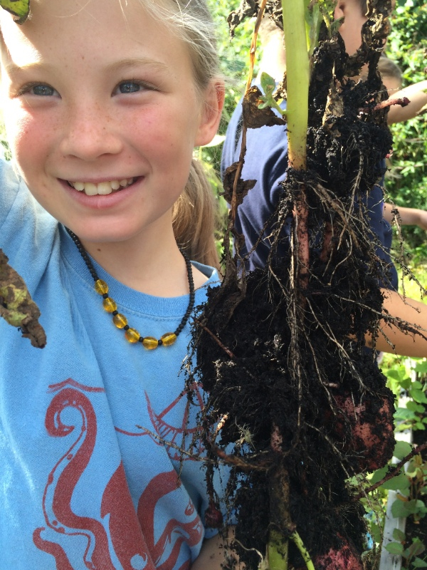 She simply didn’t believe me. There was no way that there could be carrots growing in her school garden because all she could see was a bunch of green leaves. But this little kindergartener from Veterans School had the surprise of her life when she reached down, scraped at the soil surface and found some orange! In the next moment she was yanking a carrot out of the ground along with her classmates and holding it up in the air with the biggest smile.