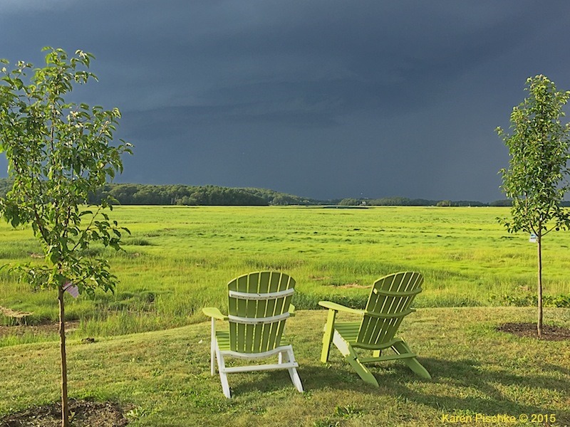 ‘Waiting for the storm to pass.’ Seems a bit of an analogy for what’s happening in the world today. I have seen amazing storms come down the Annisquam River toward Ipswich Bay. This summer I was at Lobstaland and lucky to catch this storm coming up the river and over the marsh. Last Sunday I was at Lobstaland for their final night of the 2015 season. Looking forward to next year’s menu, along with great views of the marsh. Louisa May Alcott said – “I am not afraid of storms, for I am learning how to sail my ship.” Karen