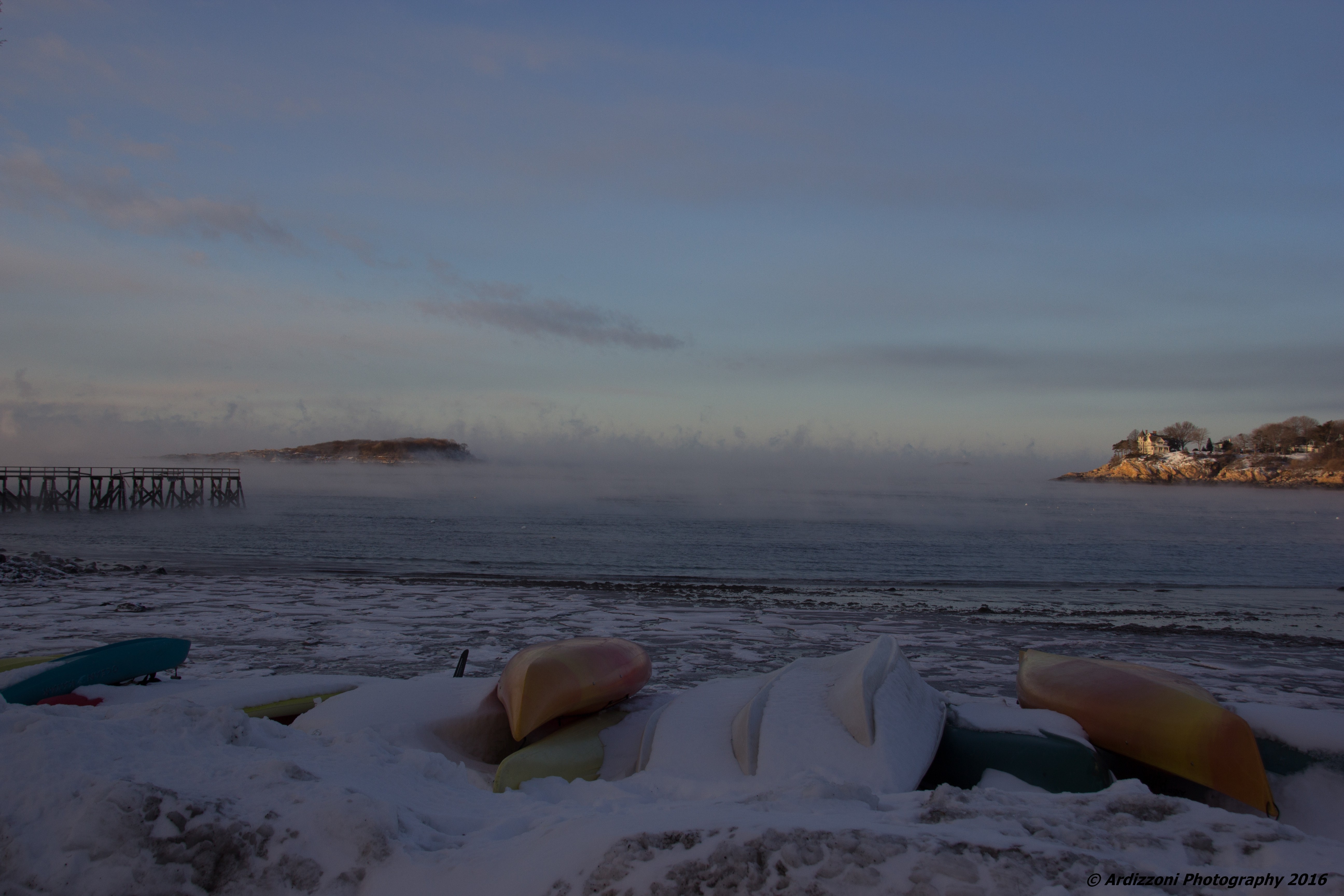 Febrary 14, 2016 sea smoke at Magnolia Beach with kayaks