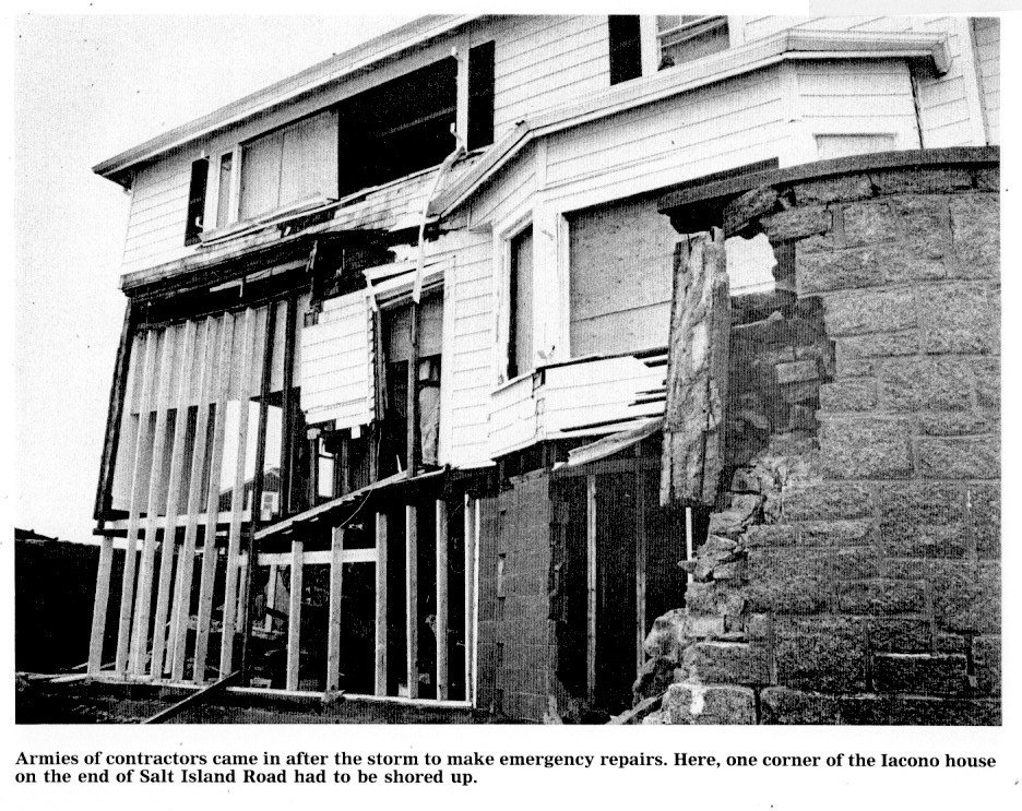 Many thanks to Mary Tucker McLoud for sending a copy of the book from which these photos originally appeared. The book is titled Storming Ashore and was published by the Gloucester Daily Times after the October 30th, 1991 no-name storm. The focus of this batch of photos is to show the extensive property damage to homes along the Atlantic side of Cape Ann.