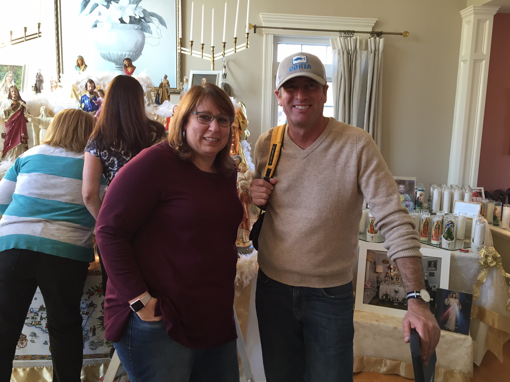 “Ma” & Bridget Mathews, carefully placing “Aunt Vinci Militello’s” antique Saint and Angel figurines on the altar