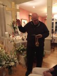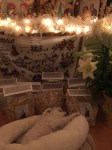 Godchild Lainie Nobel Placing St. Sarah, Patron Saint of Laughter on the altar befor last night’s blessing.