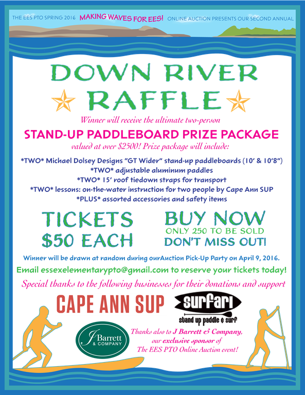 Essex Elementary PTO is raffling off 2 Stand up Paddle boards and more. Check out the raffle and we will be following it up with an online raffle of local goods and services from Cape Ann. If you would like a ticket you can contact Kendra at Double Exposure. 978-283-0870