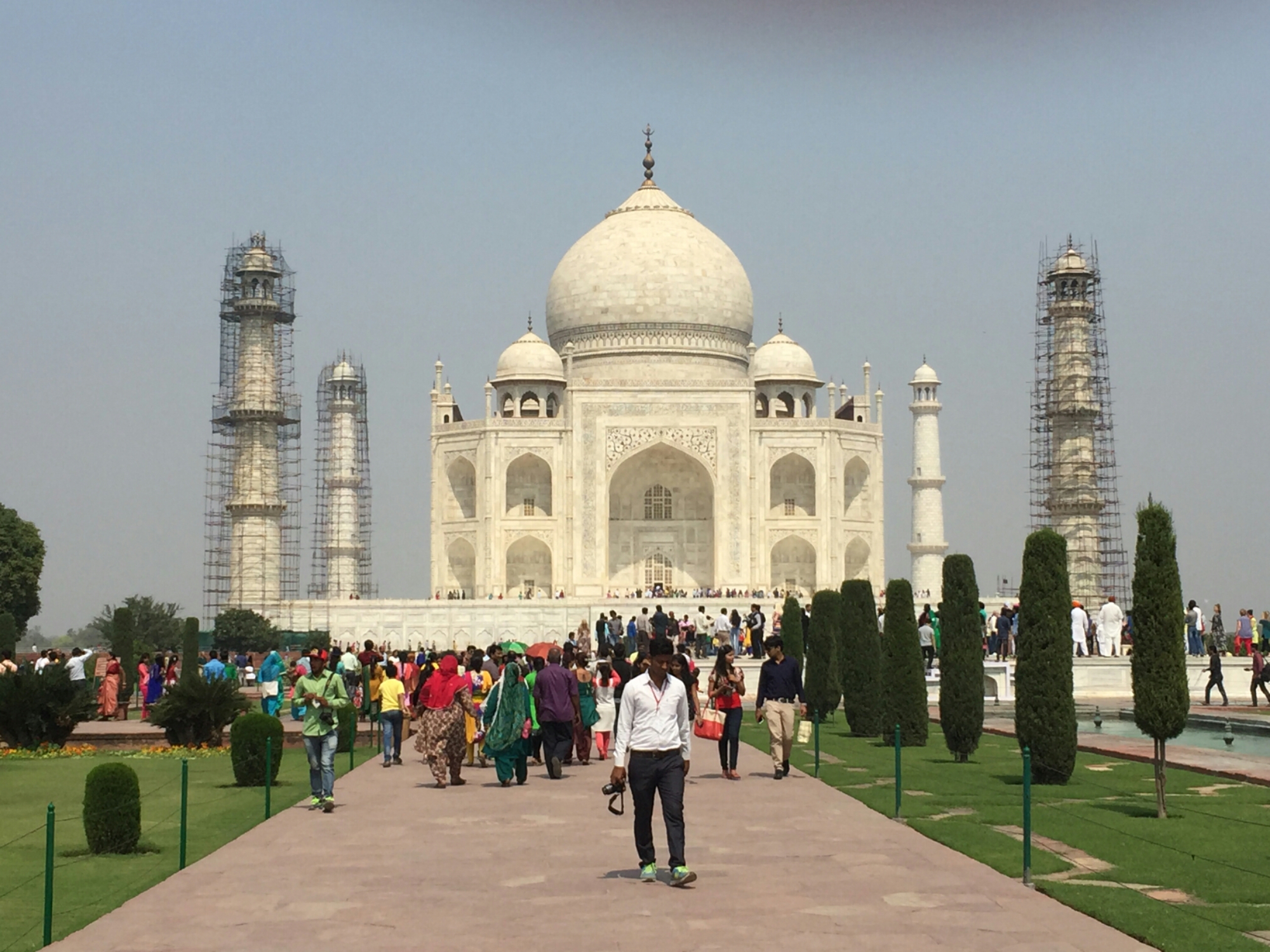 My husband and I recently traveled to India for a family wedding. In my mad dash to the airport, I left my GMG stickers at home. While there I was never able to connect to the hotel’s very slow computer to access my email, and truly felt ‘a world away.’ Somehow, I did manage to logonjust once to GMG’s website to catch up on local news and print a GMG sticker. The Indian wedding was 3 days long, and included a Sikh and Hindu ceremony. I took part in the mendhi (henna) and other ceremonies. The family also arranged tours of Old Delhi and the Taj Mahal. We totally immersed ourselves in Indian culture and customs, were charmed by our warm new relatives, and enjoyed delicious, buffet Indian meals. Cows were seen roaming the streets and sidewalks, along with dogs and monkeys, like this one seen at the Taj Mahal. And if anyone thinks Boston driving is crazy, they haven’t been to India! This video is shot from the front of our bus, on the way to the Taj Mahal. :O Â