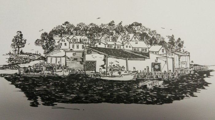 Glorious clouds pressing down upon the harbor this morning–solid and simplified. Reminded me of Canadian painter, Lawren C Harris.