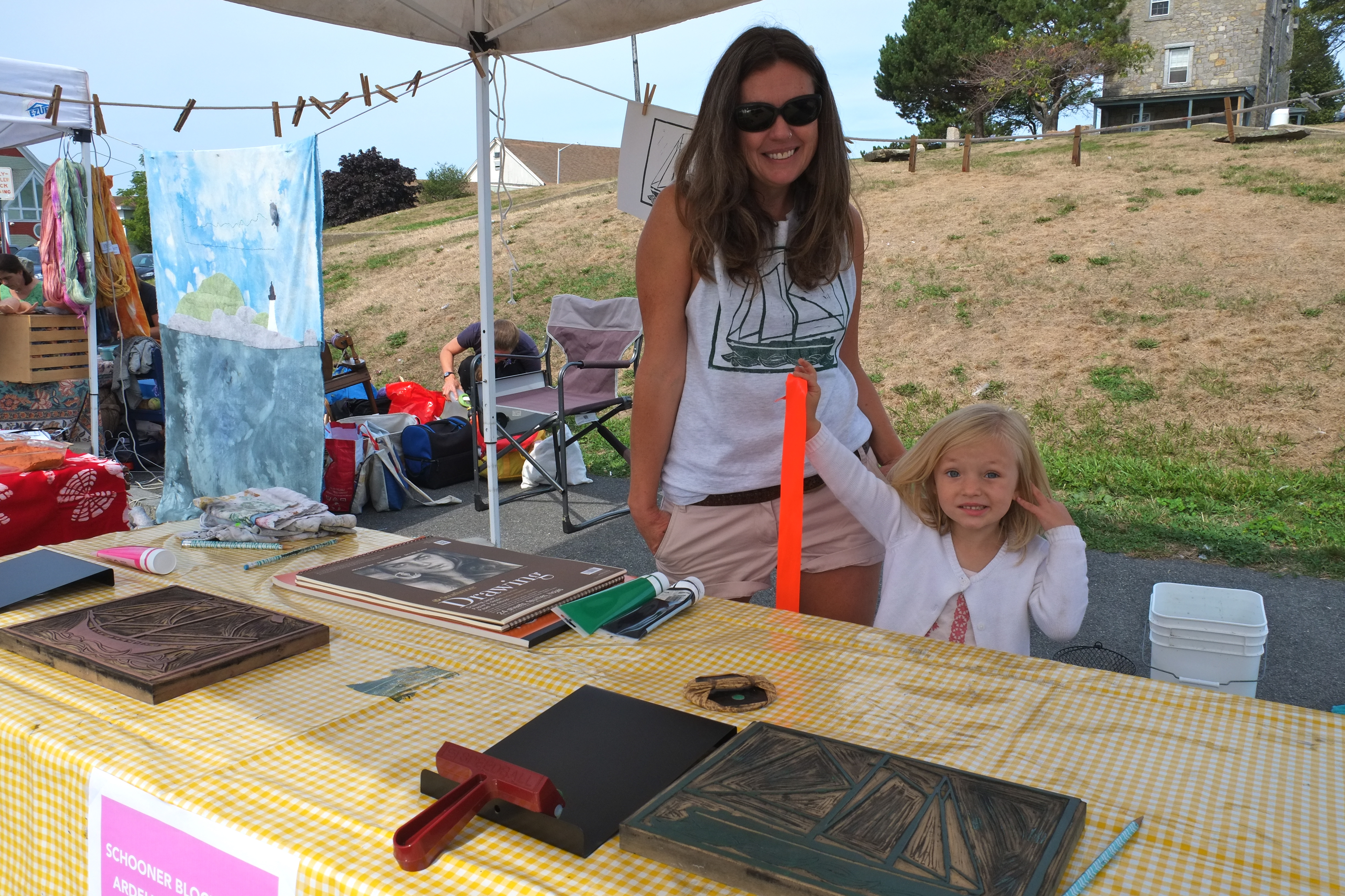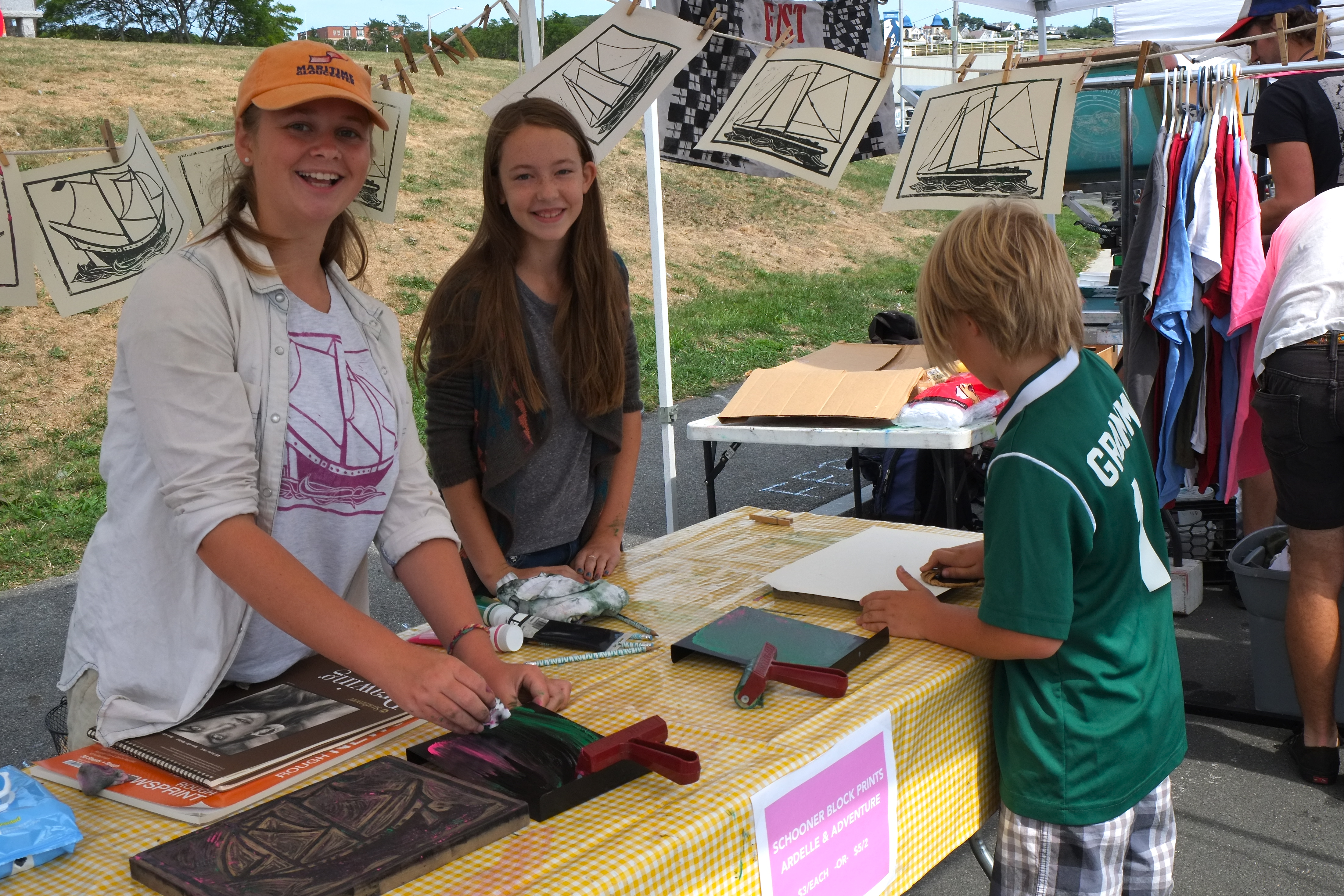 Michele Del Vecchio’s beautiful block prints of the Schooners Ardelle and Adventure that she made for the Maritme center