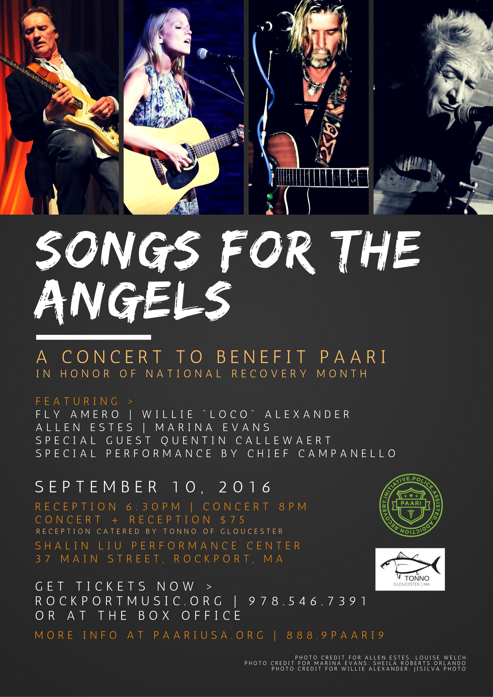 Last chance for tickets…they are selling out. Would love to see all of our friends at this great benefit featuring delicious food from Tonno and a fantastic line-up of singer songwriters:
