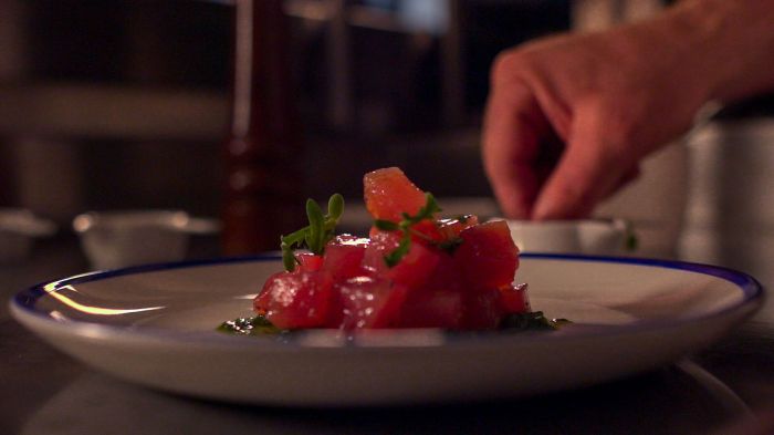 Blue Fin Tuna Belly with apples, lemon, extra virgin olive oil and fennel.