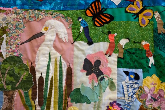 The East Gloucester neighborhood quilt is so beautiful it will tug at your heart strings, especially if it is your neighborhood, as it is ours. So sweetly capturing the spirit of our neighborhood, the quilt is simply a masterpiece of fun and whimsy. Monday’s unveiling at the Rose Baker center was attended by the quilters, friends, and family and we all just reveled in the beauty of the piece. JUNI VAN DYKE, YOU ARE A GIFT TO THIS COMMUNITY!