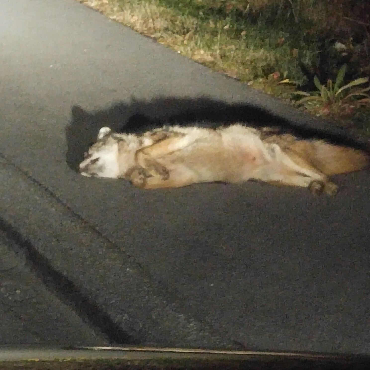 What I don’t understand is why it’s laying dead with its head facing inland but on the ocean side of the road. I’d think if it got hit by a car sprinting toward the water it would be facing the water. If couldn’t have got hit where it was unless a vehicle went up on the sidewalk. Unless someone/thing moved it out of the middle of the road, but then again, who is gonna pick up a dead coyote?