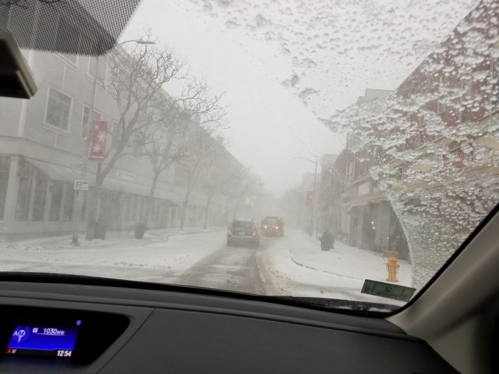 While the snow came later than expected, a full-blown winter storm was definitely in the air. We took a little tour of Rockport from Old Garden Beach, to Bearskin Neck, to Long Beach, and down Eden Road just before the storm blew in. As we were driving home, the snow began to come down fast and furious.