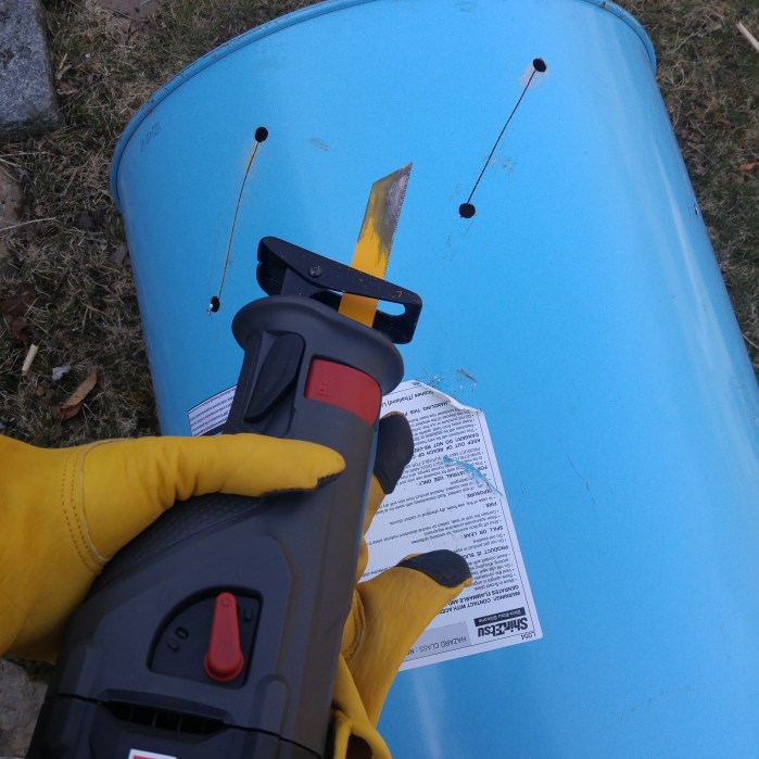 Also drill some holes in the bottom so water can escape and the burn barrel won’t rust out as quickly.