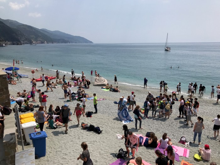 Liv enjoys going to beaches where ever she travels and I’ve asked her to let us know how folks manage trash in remote villages by the sea, like Manarola and Monterosso. As you can see in the photos above, there are trash and recycling barrels along the beach, and lifeguards also pick up garbage left behind.