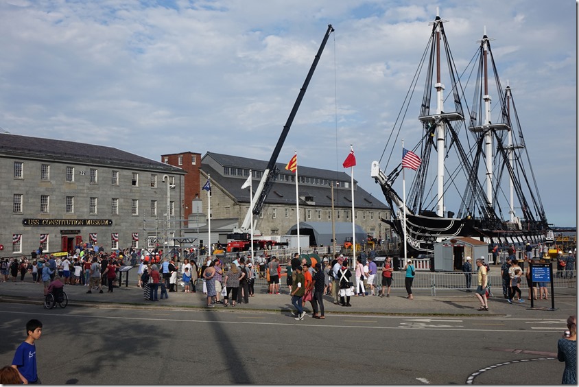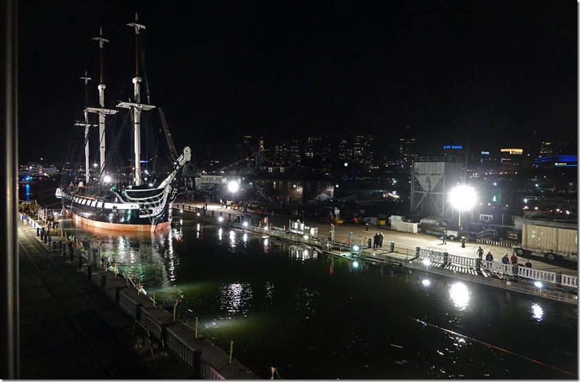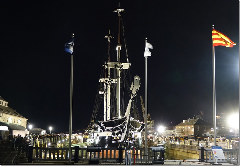 Here are a few photos of USS Constitution’s re-launch from dry dock in the Charlestown Navy Yard last Sunday after 26 months of restoration (that’s why she missed leading the Tall Ship Parade of Sail a few weeks ago). She launched on the astronomical high tide about 11:30 pm.