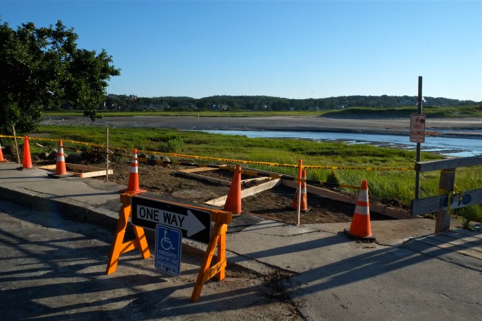 The concrete had been poured by noon. Mark Cole stated that the shower is similar to the one at Stage Fort Park. Peastone will be placed around the cement bases, along with some landscaping. My sincere hope is that native plants only will be planted. We don’t want non-natives such as daylilies and hosta planted where they can easily spread into the marsh. Seaside goldenrod is an example of a native pollinator plant that would blend beautifully with the surrounding area. We have an abundance of it at the HarborWalk Butterfly Garden that are ready to divide so the plantings wouldn’t have to cost the city a single penny!