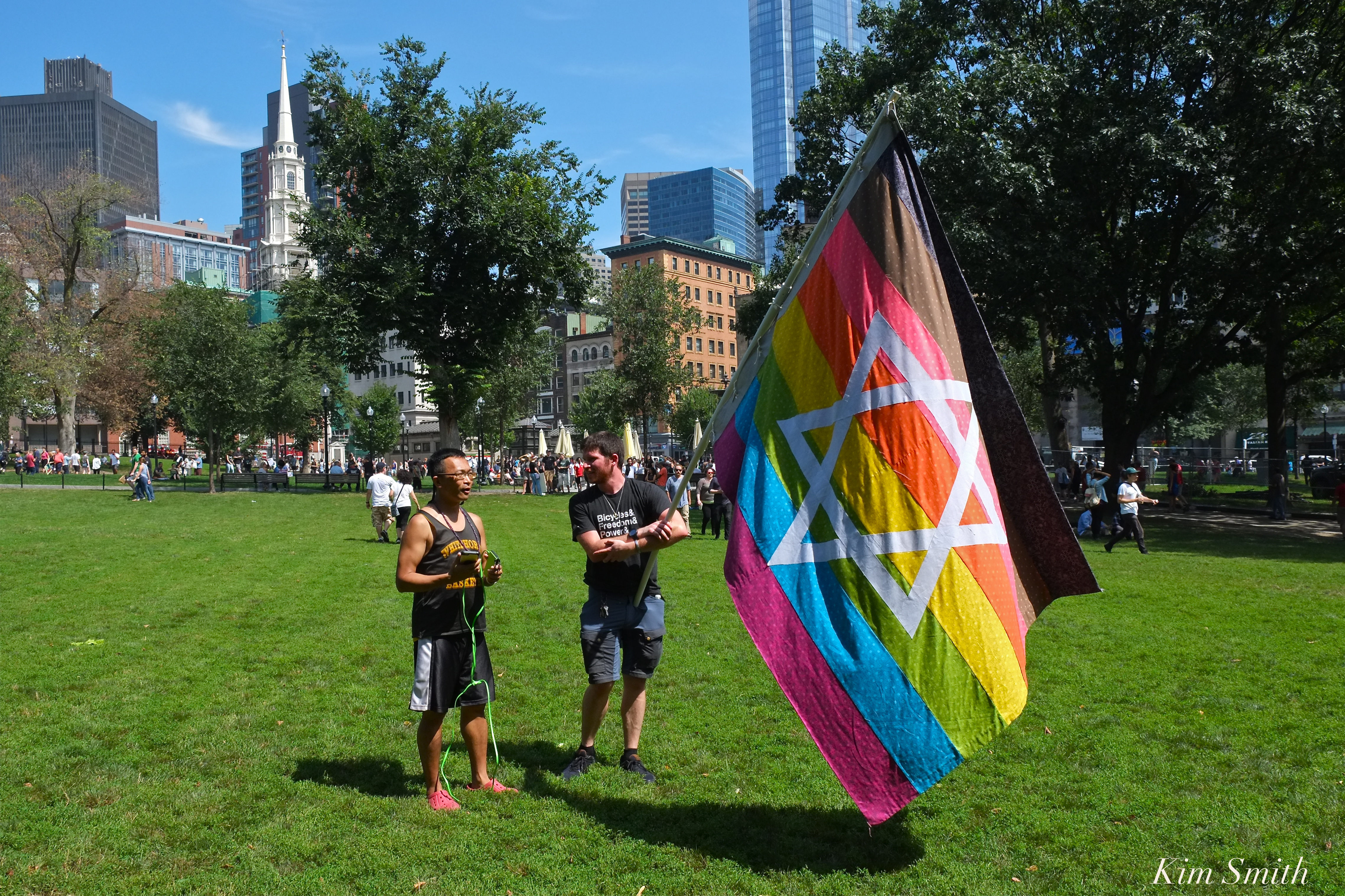 Along Beacon Street, which was closed to traffic, there seemed to be a police headquarters of sort. This was also where the largest group of counter protesters had gathered. They had a megaphone and were leading the crowd in chants — “Black Lives Matter,” “No Trump, No KKK, No Fascist USA, and “Whose streets? Our streets.” In repeated situations of high tension and raw emotions, the police kept their cool, handling haters and troublemakers with clarity of strategy and with lightning speed.