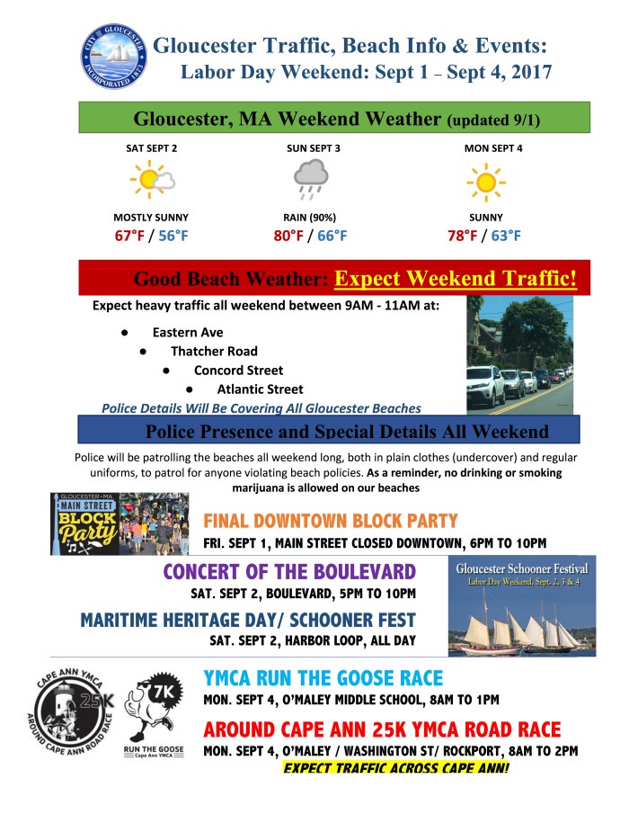 Gloucester’s Labor Day Weekend Events & Traffic Advisory for Sept 1 to Sept 4, 2017:
