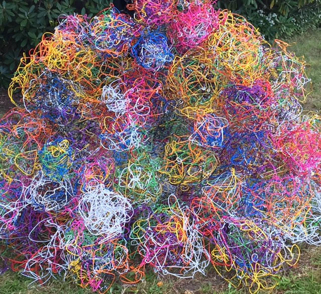 It’s “All Wired,” my new sculpture, made from 3,000 metal hangers! You’re invited to see it and the works of 37 other artists at the “Tension – Outdoor Sculpture at Maudslay 2017” show at Maudslay State Park, Curzon Road, Newburyport.