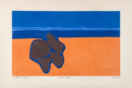 Pebble Beach, 20 x 12, woodcut, 1973