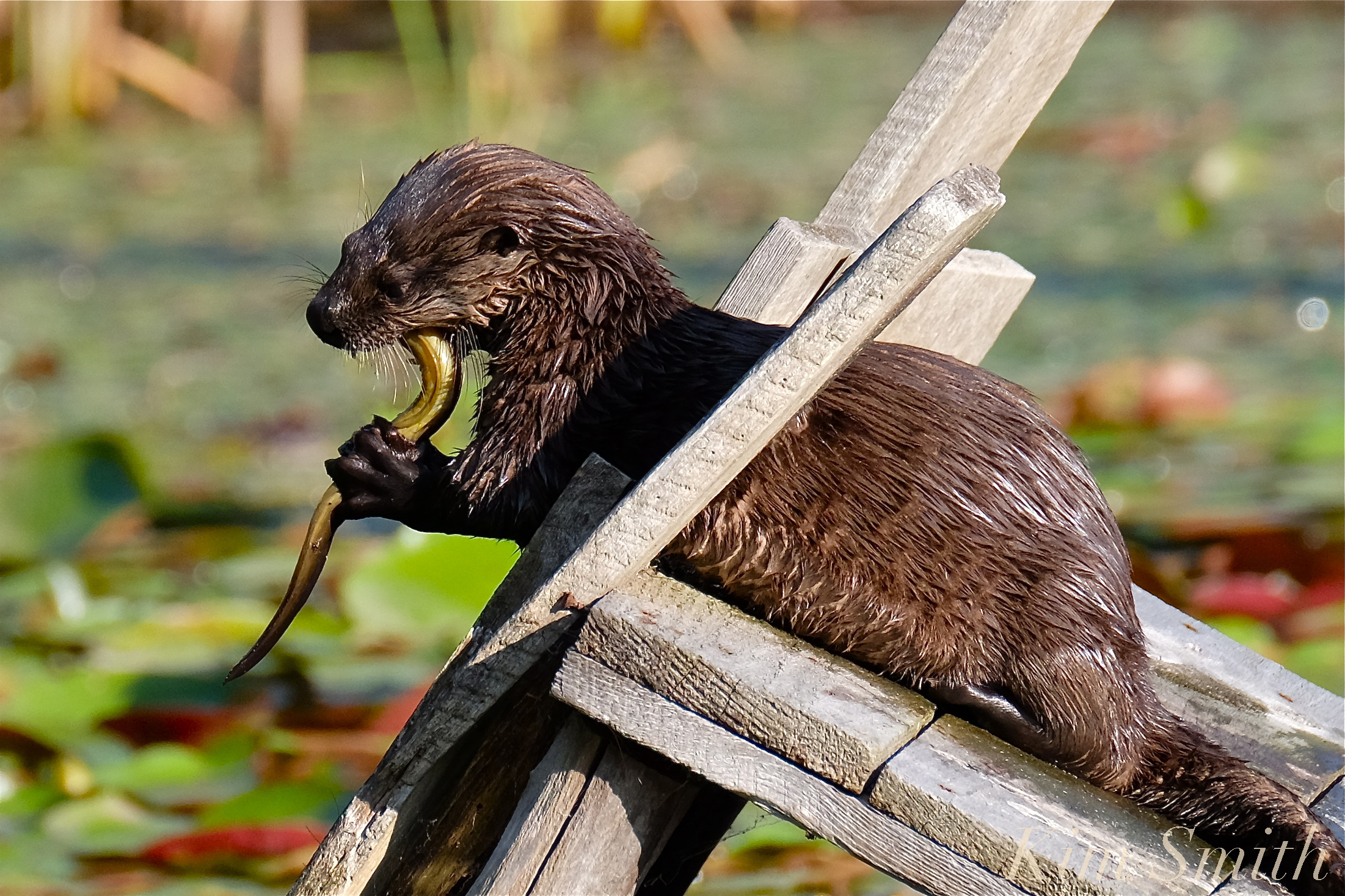 North American River Otter Eating American Eel Gloucester MA -8 copyright Kim Smith