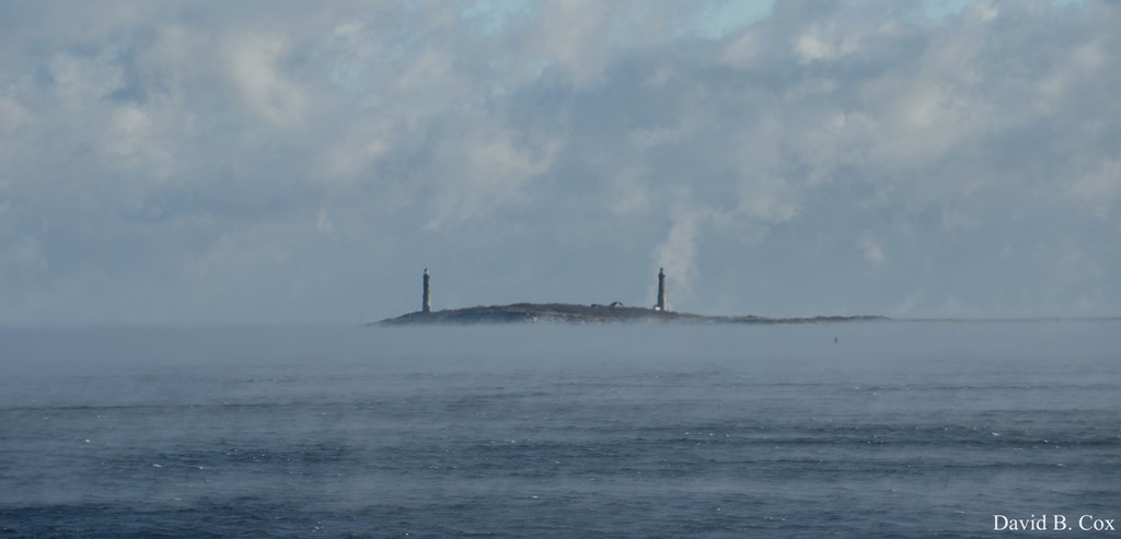 Early this morning while out filming Cape Ann Lighthouses in the sea smoke, far off shore there was a Snow Goose bobbing about in the frigid waters.