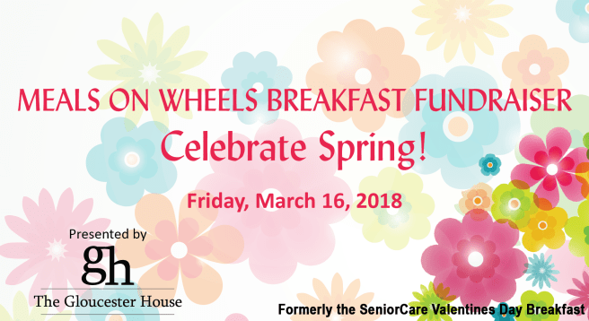 SeniorCare Inc. will hold its annual Celebrate Spring Breakfast to benefit Meals on Wheels on Friday, March 16, 2018, from 7:00 a.m. to 9:30 a.m. at The Gloucester House, located 63 Rogers Street in downtown Gloucester. Tickets are $12 per person and include a buffet breakfast. Breakfast sponsorships are available at a variety of levels. Formerly the SeniorCare Valentines Breakfast, proceeds from the breakfast will benefit SeniorCare’s Meals on Wheels program.