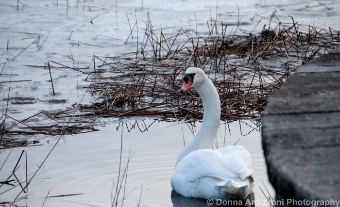 Mr. Swan is the tiny lump on the ice toward the left. We don’t want to see you at Niles Mr. Swan until the Pond thaws!