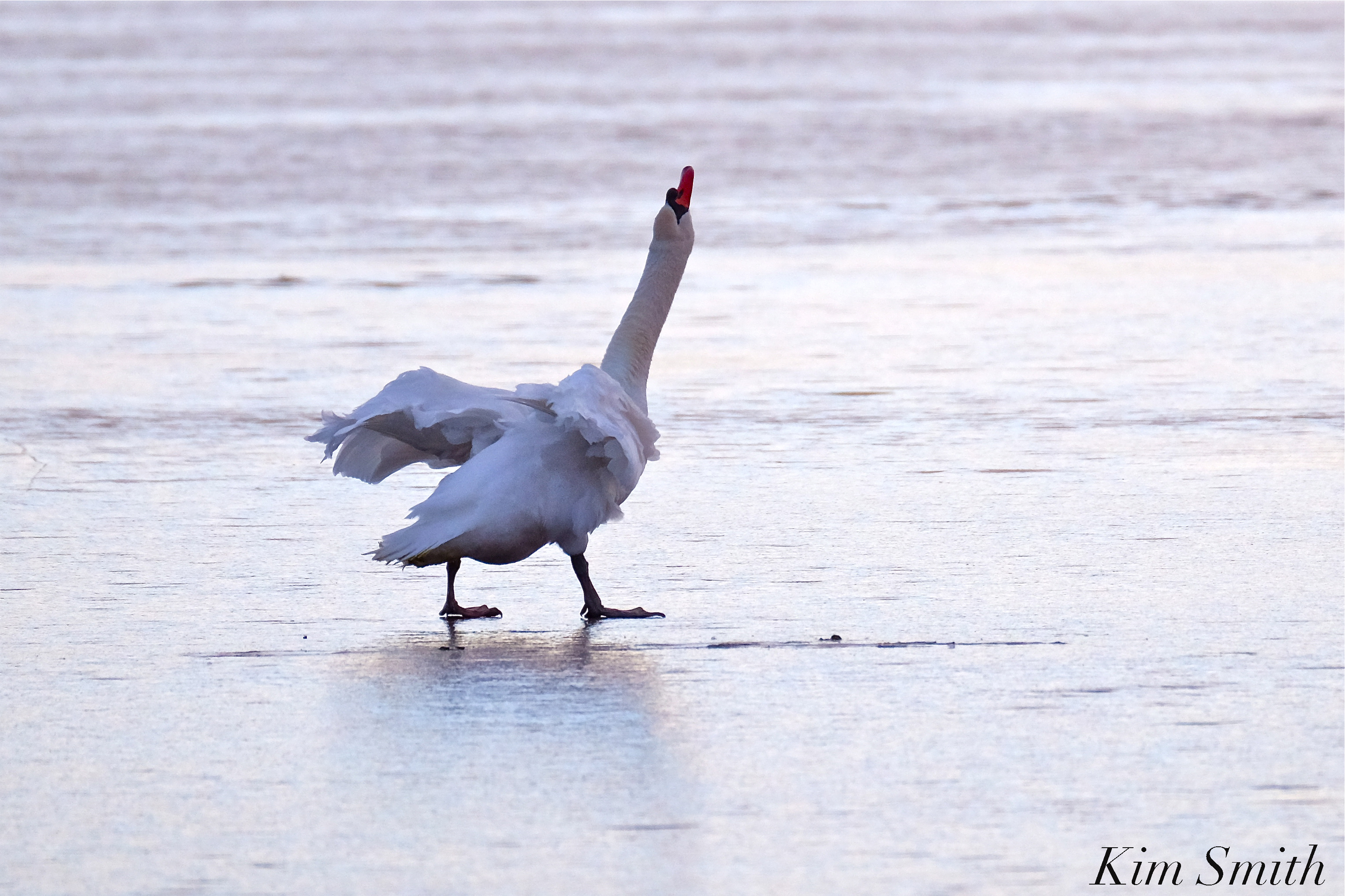 Mr. Swan Niles Pond Frozen Sunrise Mute Swan -8 copyright Kim Smith