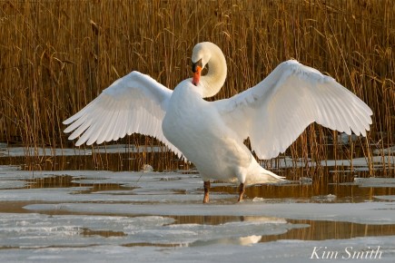 Mr. Swan winter wing stretching -2 copyright Kim Smith