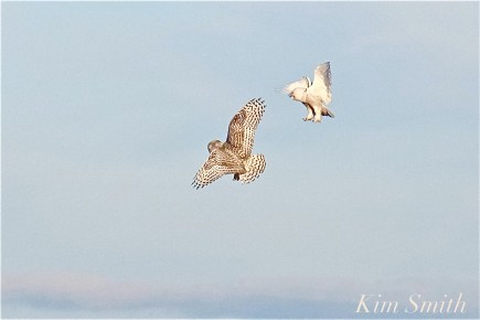 Snowy Owl Female Male Fight -3 Gloucester MA copyright Kim Smith