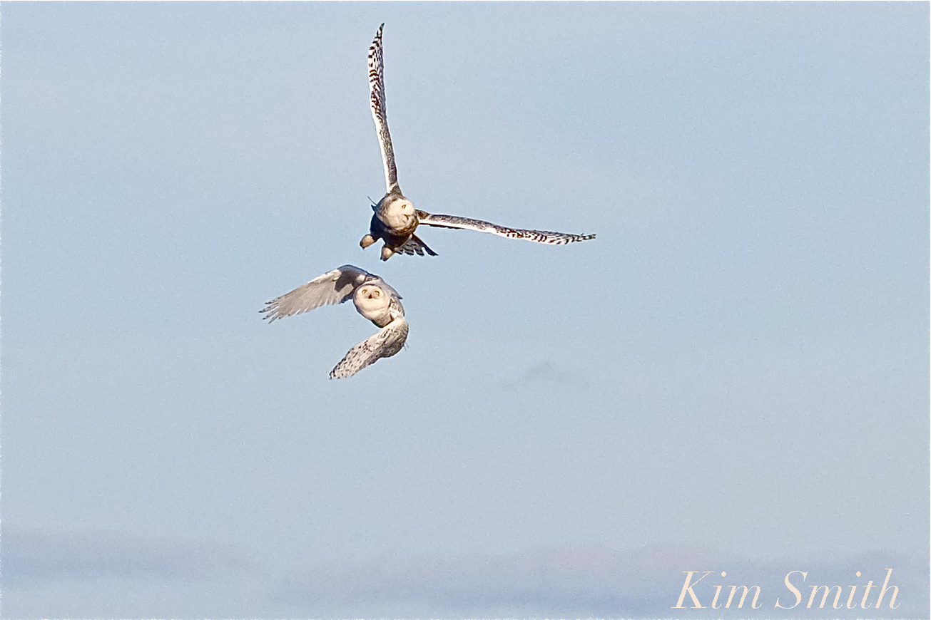 Snowy Owl Female Male Fight -7 Gloucester MA copyright Kim Smith