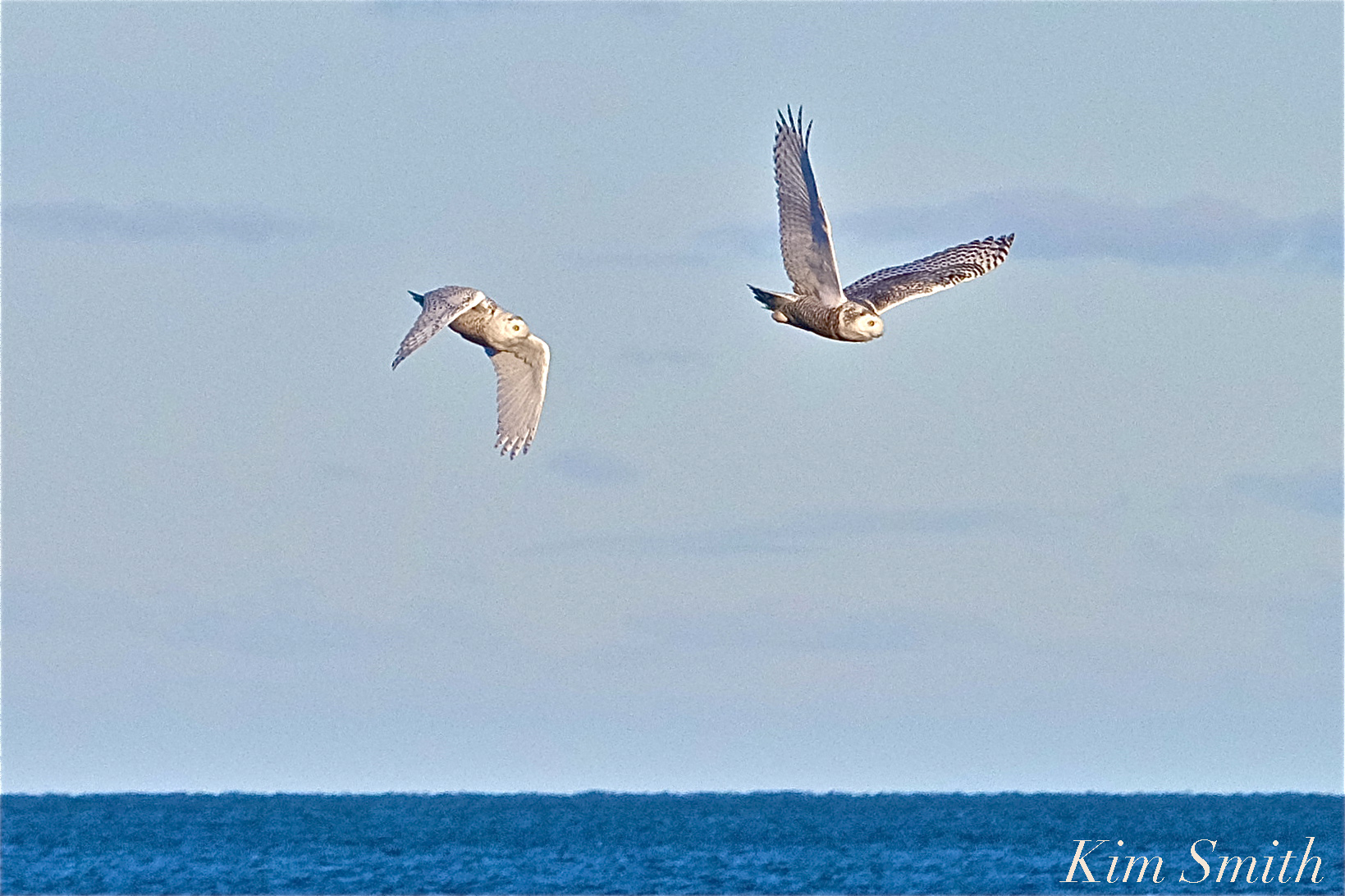 Snowy Owl Female Male Fight -9 Gloucester MA copyright Kim Smith