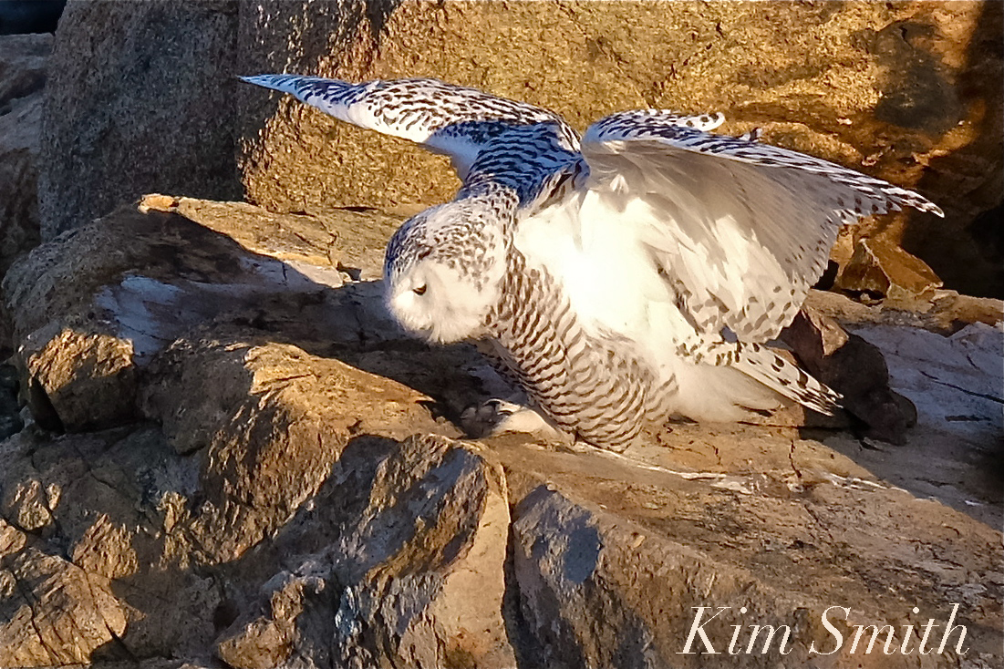 Snowy Owl Jumping Hedwig Gloucester MA copyright Kim Smith
