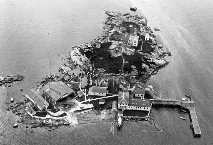 This photo from my new book, “Ten Pound Island,” shows that the island was a busy place in the 1920s. At lower left is the Coast Guard air station; next to that the government fish hatchery; behind them the lighthouse tower and keeper’s house.