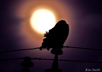 Snowy Owl Feathers in the Moonlight Hedwig Gloucester MA copyright Kim Smith