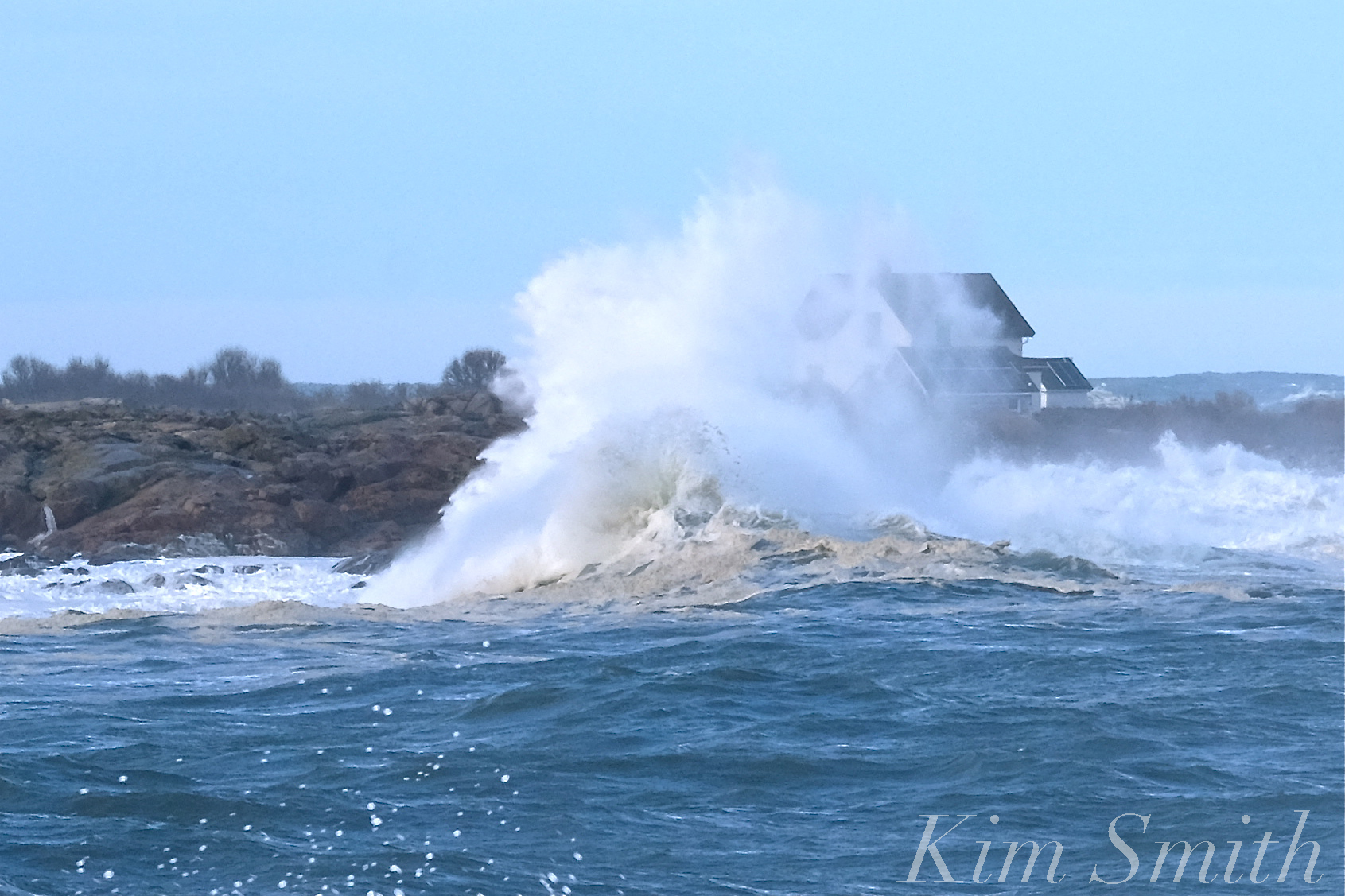 Atlantic Coast Waves Straitsmouth Island Lighthouse Keeprs House Rockport MA Noreaster Storm Riley -5 copyright Kim Smith